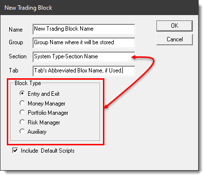 The Blox scripts that are added to a new block can easily increased and reduced. To see which scripts will be added to a block when the option is enabled with a check-mark is available here: "Include Default Scripts"