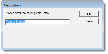 •Click on the "New" button on the lower left side of the System Editor, and enter the name "Tutorial System" into the New System dialog, and then click the OK button: