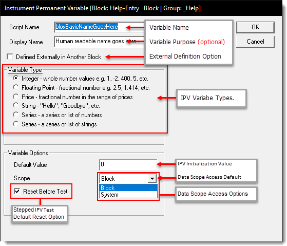 BPV’s can be Block, System or Test scope. Each of those scope ranges can reset to default before each test or not.