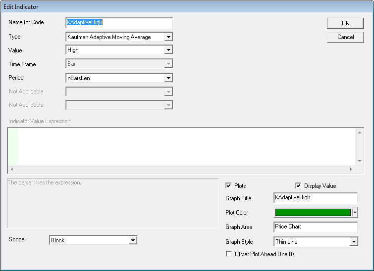 Number of price bars over which to calculate the Kaufman averages. |