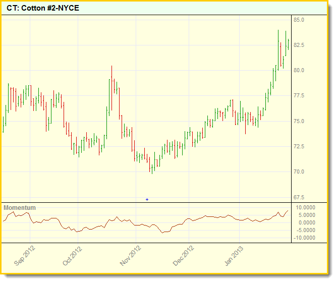 Momentum is the difference between current price and the price a specified number of bars ago.