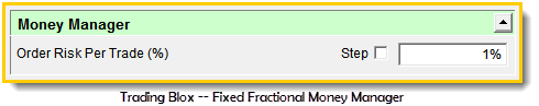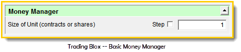 Our first Trading Blox Basic Money Manager can apply a fixed quantity to each unit order. This is the most simple form of adding quantity to an order.
