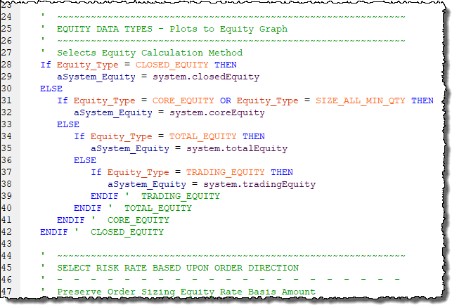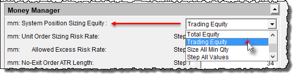 This next sectioned image shows how a Futures Money Manager provides the capability to test and use any of the four equity calculation methods.